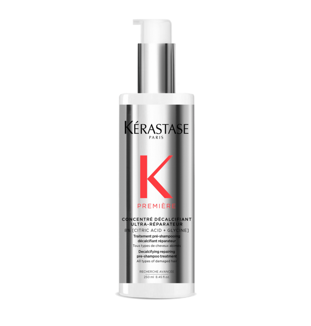 Première Lotion Pre-Shampoo (Kérastase) er et intensivt reparerende forbehandlingsprodukt spesielt utviklet for skadet hår. Den er formulert med 8 % ren sitronsyre og glycin, som sammen bidrar til å reparere indre og ytre skader i hårstråene. Dette inkluderer skade fra varmeverktøy, kjemiske behandlinger, bleking og mineraloppbygging fra vann.