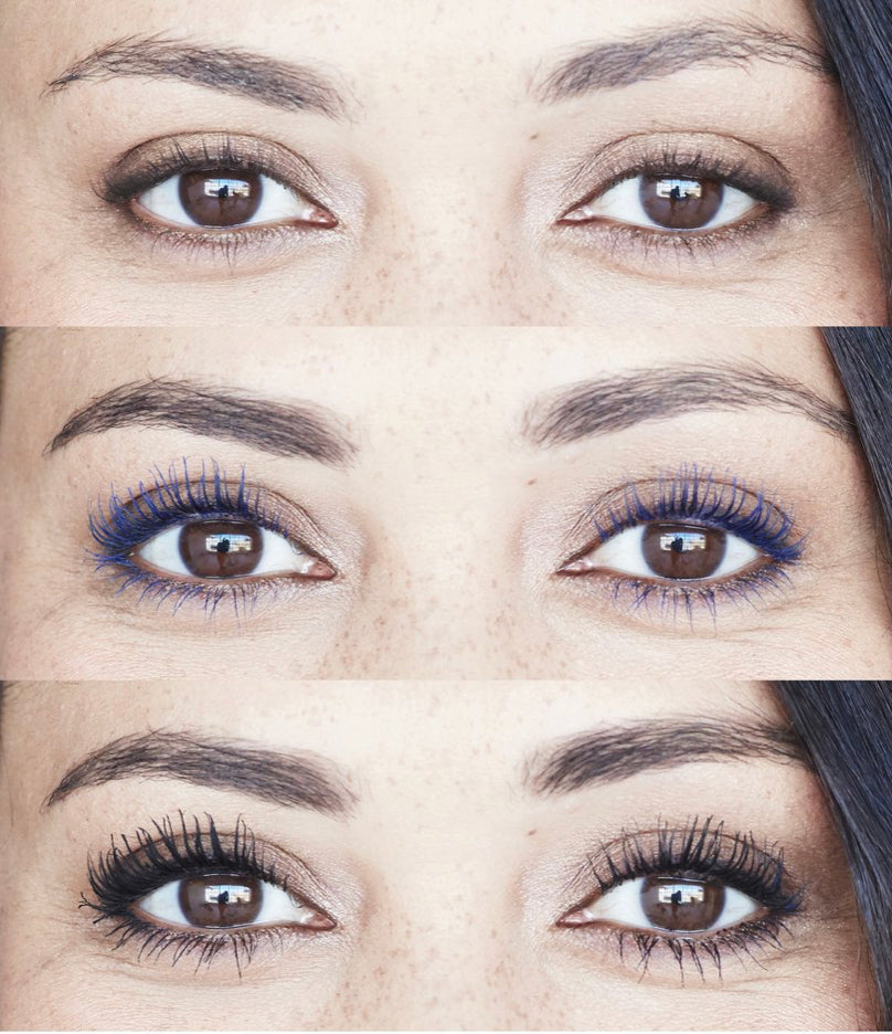 Den blå primeren forbereder vippene ved å separere, forlenge og bygge base for maksimal effekt. Den sorte mascaraen legger seg sømløst over primeren og gir dramatisk volum, definisjon og langvarig hold – uten å klumpe eller smuldre.