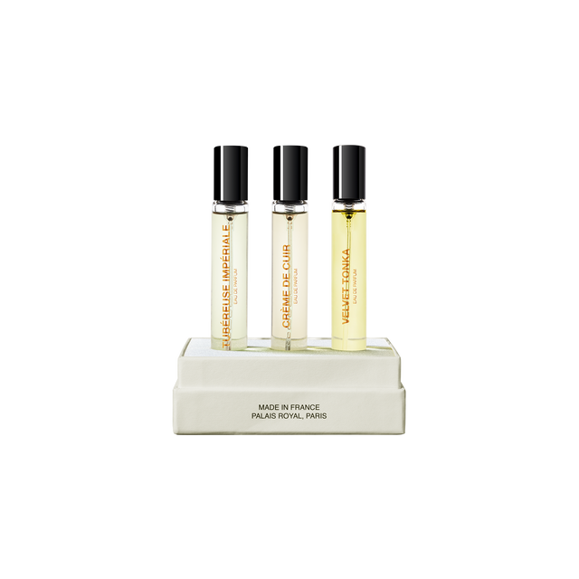 Oppdag BDK Parfums sin Collection Matières, en luksuriøs trio med tre unike dufter, hver presentert i 10 ml flasker. Denne samlingen gir deg muligheten til å utforske varierte duftopplevelser, perfekt for enhver anledning. Hver parfyme i settet bærer sitt eget særpreg og uttrykk, noe som gjør det til et ideelt valg for dem som ønsker å variere duften sin.