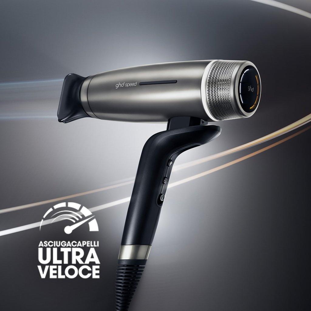 Ghd Speed setter en ny standard for stylingverktøy. Med en motor som spinner i 118 000 rpm – nesten dobbelt så raskt som vanlige fønere – tørker den håret med presisjon, uten å gå på kompromiss med sunnhet eller glans.